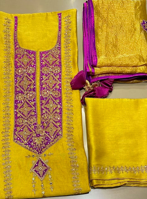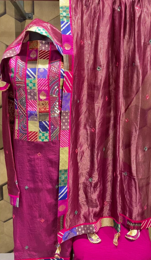 Fine Chanderi outfit with brocade bordersRegular price Rs. 18,500.00Regular priceUnit price per-