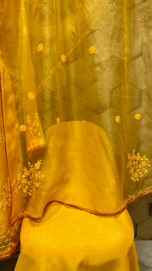 Bright lemon yellow chanderi outfit