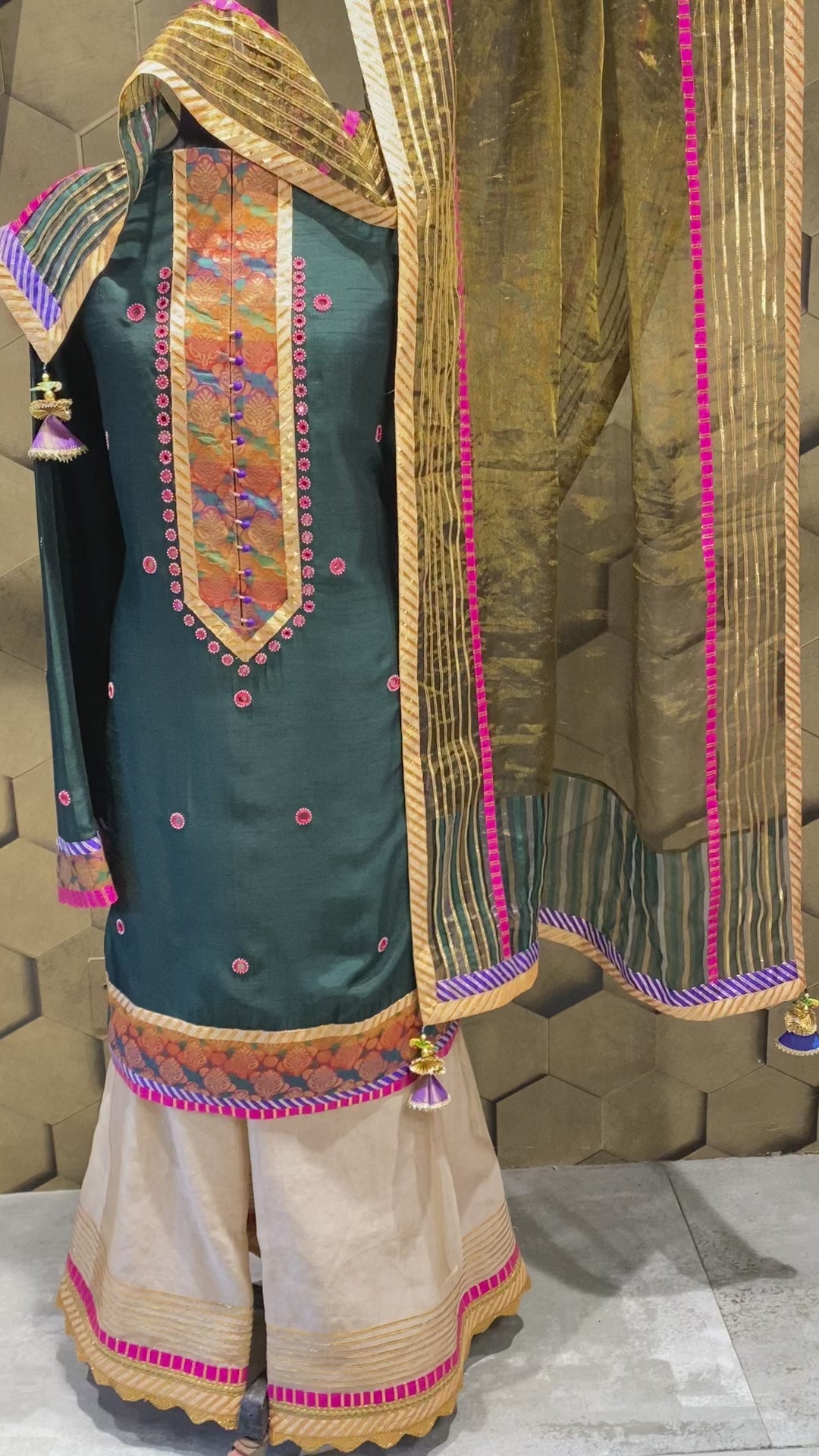 - Pure silk tissue sharara with heavy gota details